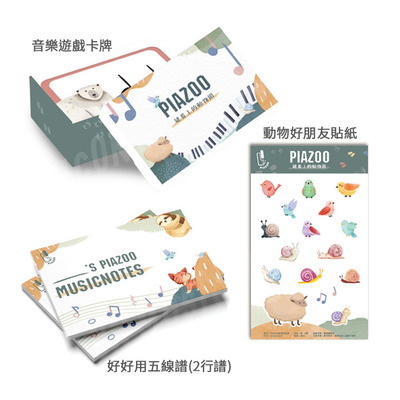 Piazoo 鍵盤上的動物園 專為鋼琴初學設計 音樂教具 遊戲卡牌 貼紙 五線譜 藝起