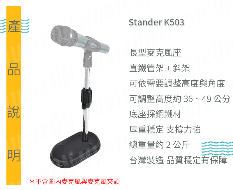 桌上型麥克風架 Stander K503 麥克風直架附斜架 加購 麥克風夾頭