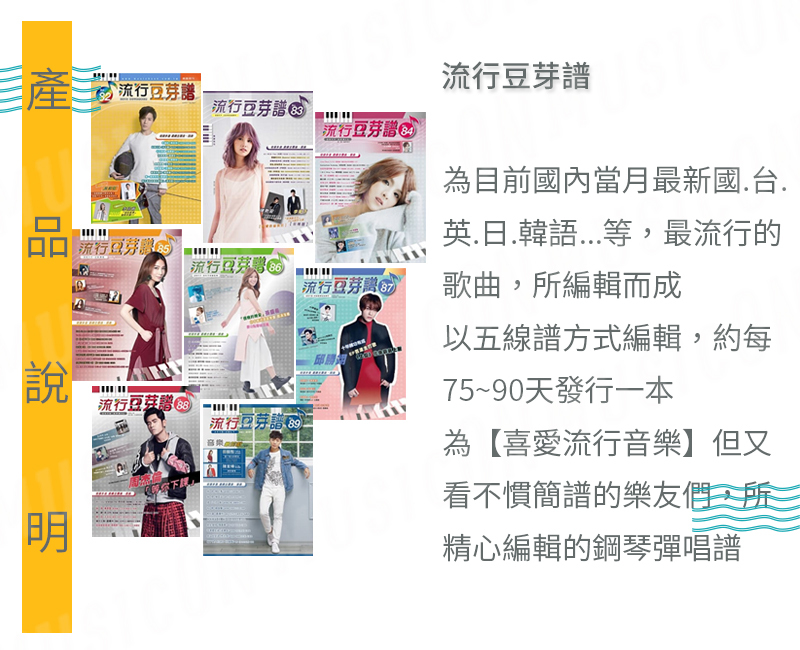 流行豆芽譜 82~89 五線譜 國台英日韓語 流行鋼琴譜 82