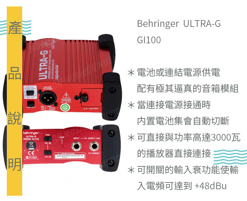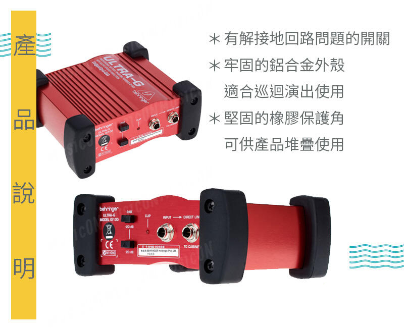 耳朵牌 Behringer ULTRA-G GI100 DI-BOX 錄音訊號轉換盒 前級效果器 優惠購導線 效果器