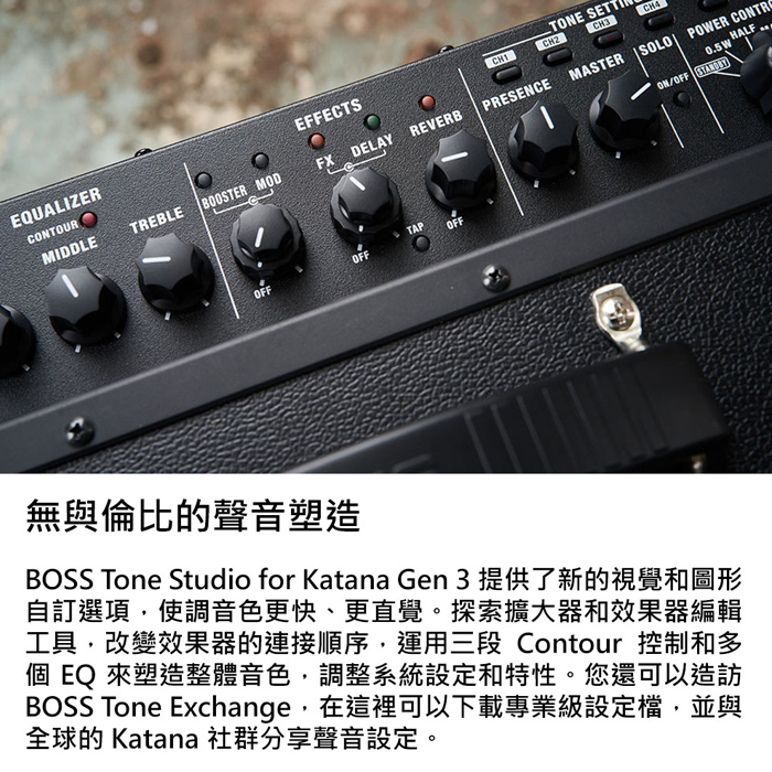 ◌ 可在BOSS Tone Exchange下載和分享Katana音色