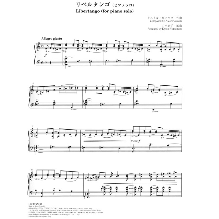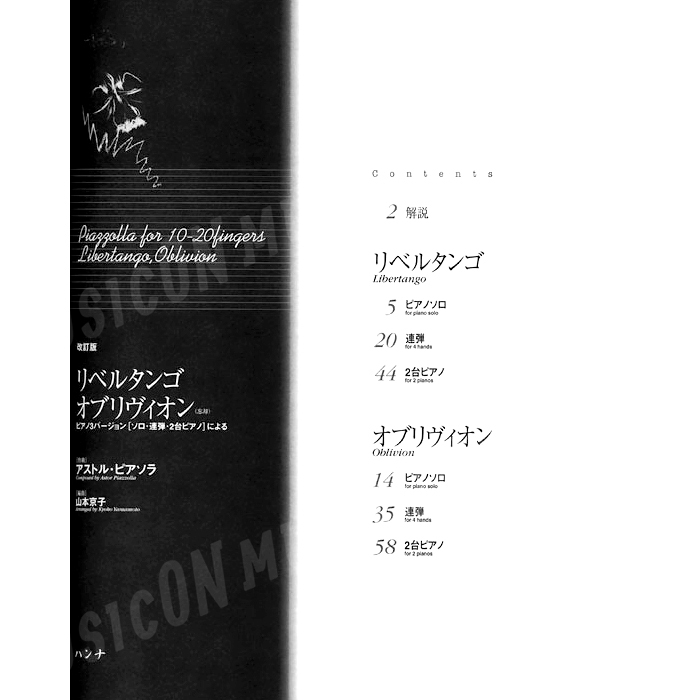 『 アストル・ピアソラ リベルタンゴ、オブリヴィオン ピアノ3バージョン[ソロ、連弾、2台ピアノ]による 改訂版 』