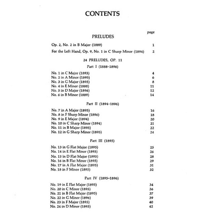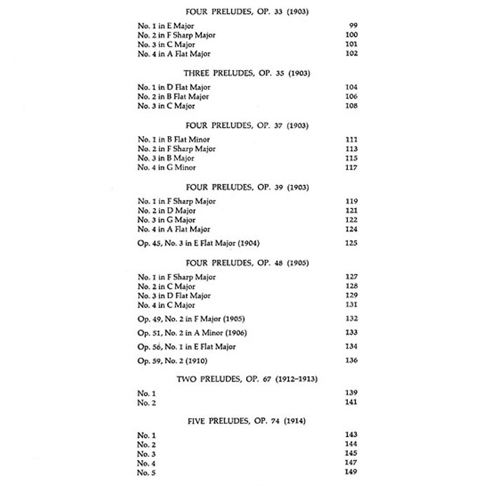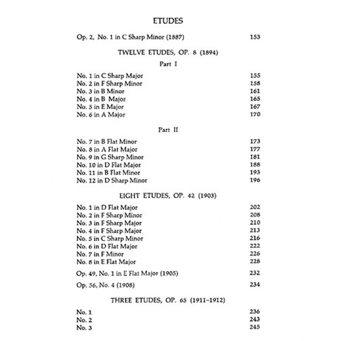 史克里亞賓早期作品受到蕭邦的影響,後期將哲學和宗敎思想融入音樂中,音樂作品被標上了神秘主義,奏鳴曲從最早浪漫類似蕭邦風格,到具有獨特的節奏變化,不尋常的彈奏指示與和絃結構,呈現作曲者不同時期音樂面貌。「Complete Preluds and Etudes 」Piano Solo