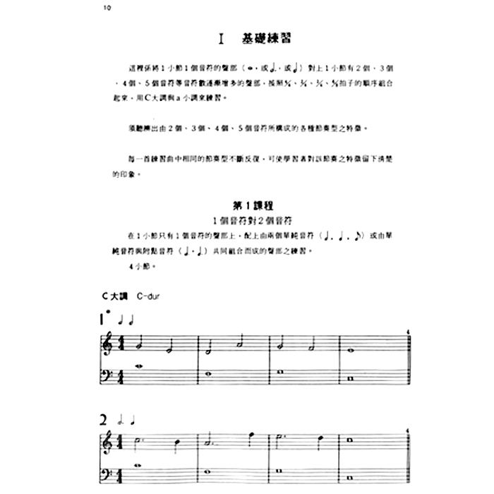 所謂二聲部,就是將兩個節奏構造不同,且旋律各自獨立的聲部加以組合。這是對位法樣式中最單純的作曲。二聲部聽音練習就是爲了要養成能從同時彈奏的二聲部進行中,聽辨出各自的旋律,並將它記在譜表上的能力。二聲部聽音,在做爲使音樂能力增強的基礎手段上具有重要而獨特的任務