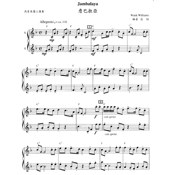 高音木笛二重奏【4】收錄多首西洋名曲,教材中二重奏可以二人合奏或兩組群奏,部份作品另編寫一種樂器成為三重奏,備感親切、饒富趣味。附和弦簡記號,可供吉他或鋼琴伴奏參考