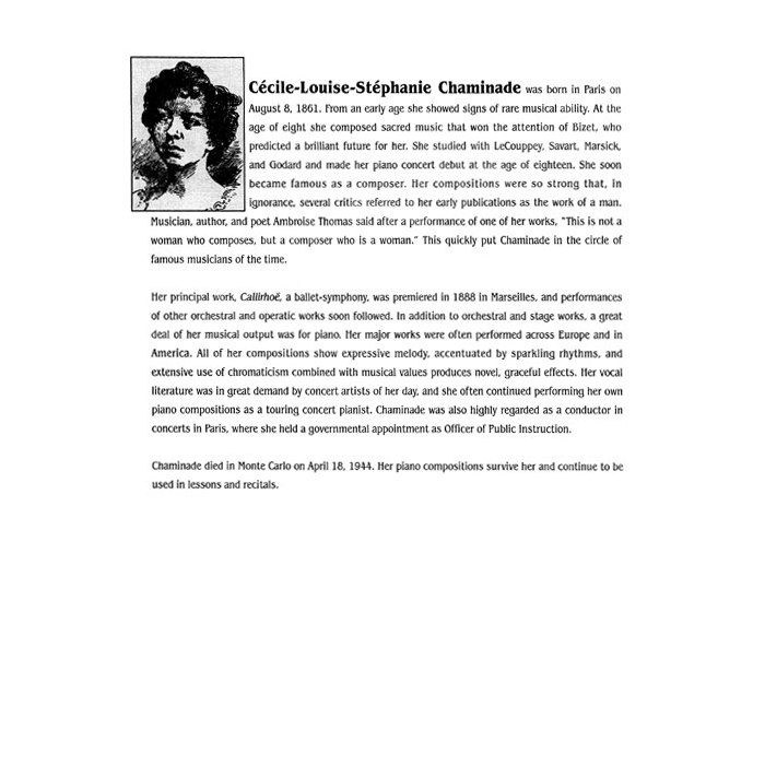 Cécile Chaminade夏米娜德法國女鋼琴家及作曲家,擅長鋼琴創作。鋼琴作品選曲集