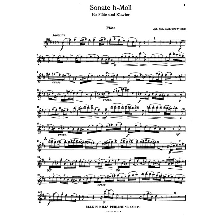 BACH SIX SONATAS For FLUTE BWV1030-1032 長笛譜