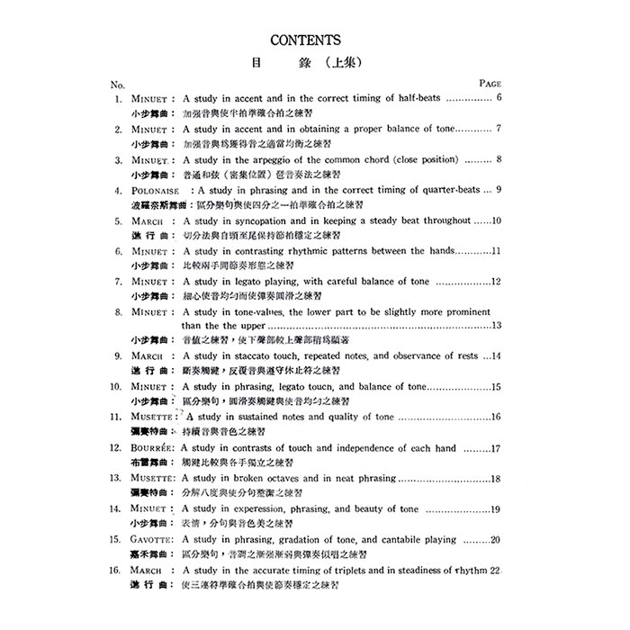 在學習鋼琴的歷程中,巴哈曲集有著不容小覷的地位,為接觸古典鋼琴極為重要的一課。巴哈的複音音樂,同時有兩個以上的聲部相互糾纏,在學習上特別費神,因此本曲集選錄較簡單優美的小品,從中訓練雙手獨立性,以做為詮釋巴洛克風格音樂的入門教材