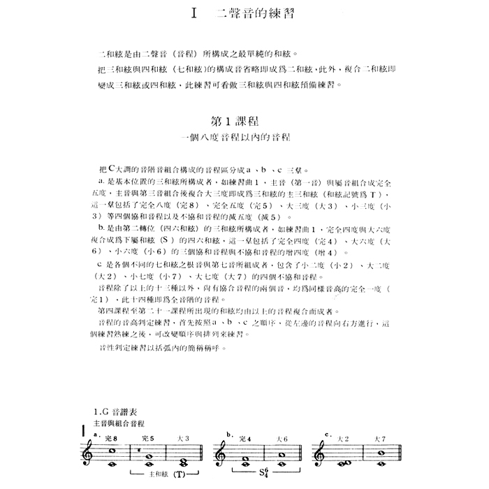 以第一册所習得的能力爲基礎,更進一歩地發展爲其目的,練習 C 大調以外的二十五種調,記憶各調的和絃與調感,並能一一分辨之