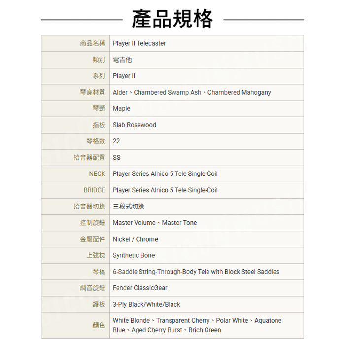 ◌ Player系列Alnico V單線圈Tele拾音器