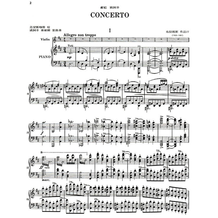 布拉姆斯 協奏曲D大調-作品77(小提琴獨奏+鋼琴伴奏譜)