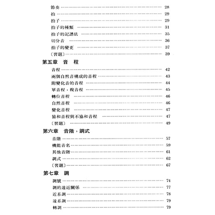 學習樂理時,最重要的是一邊解決問題,一邊養成實力。於是內有相當收量的習題,在必要的部分都加上解說。而除了作者做成的習題外,為了瞭解各大學所要求的理能力,這裏也引用了音樂學院、教育學院音樂入學考試的試題,但所引用者只限定在著作權上充許的一般習題。