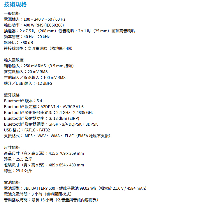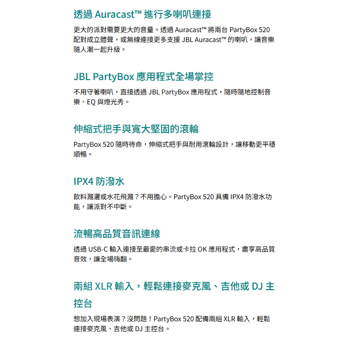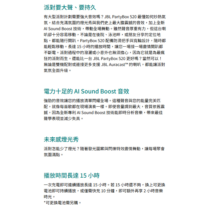 JBL PartyBox 520 便攜式派對燈光藍芽喇叭 400W PB520