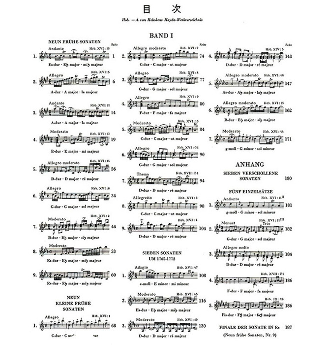 海頓的鋼琴作品與莫札特鋼琴作品,大都是為教導學生而創作的,其中有些作品亦是為其學生或接受委託,為初學者作曲。第一冊大都為海頓初期的作品,嬉遊曲味道濃厚,大都由三樂章組成,樂曲彈奏起來充滿如歌似的優雅旋律