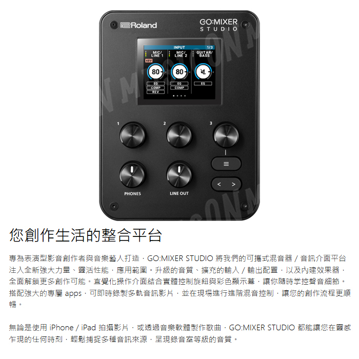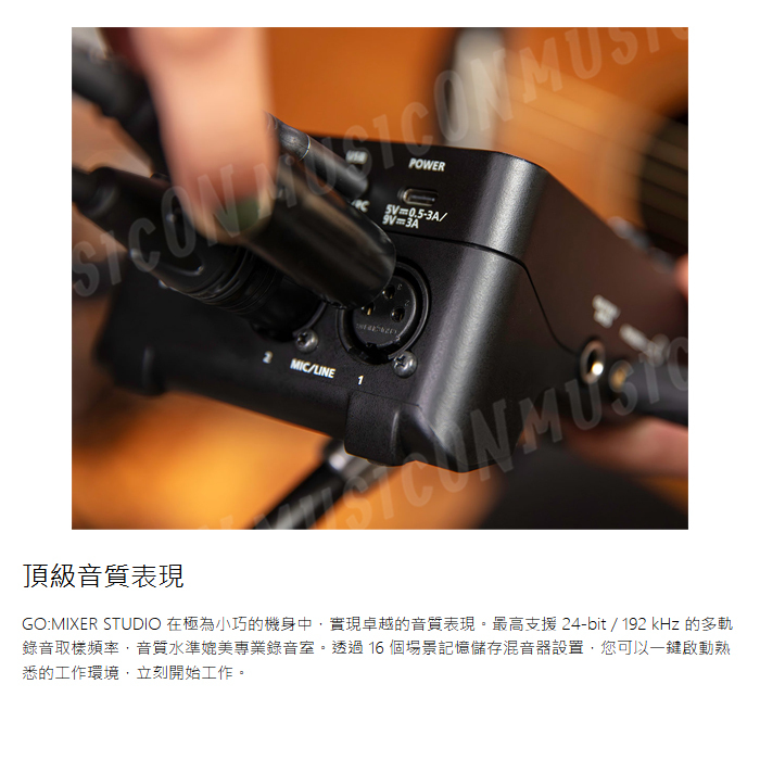 ◌ 專為表演型影音創作者與音樂人設計的便攜式混音器與音訊介面