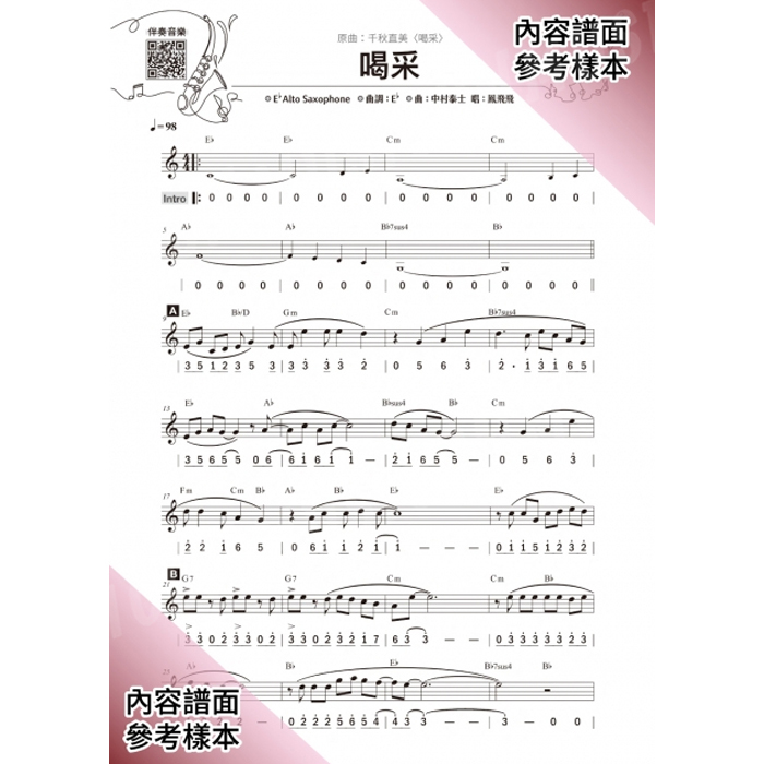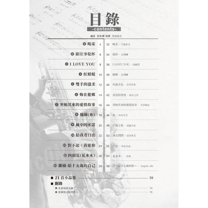 ◌ 固定調、首調雙樂譜,樂譜適度改編符合薩克斯風吹奏調性