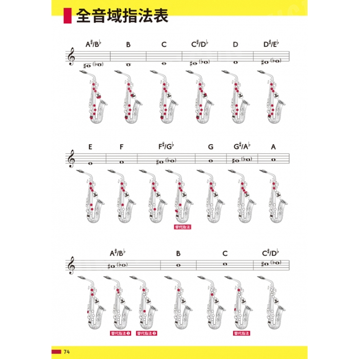 ◌ 內附中音薩克斯風全音域指法圖,查閱、學習更便利