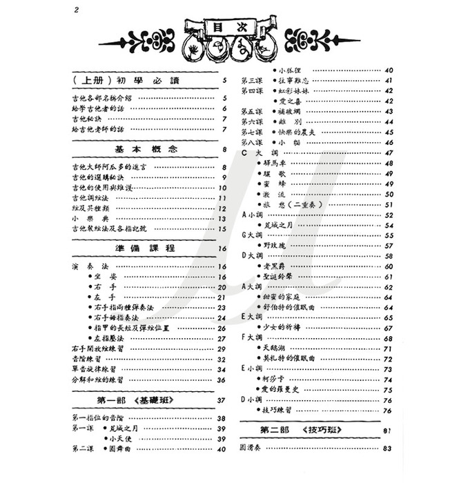 本書暢銷30餘年,由郭清界、張少華編著,以卡爾卡西奏法為主軸,由簡入繁,由難就易,循序漸進,間有電影插曲、民謠精曲、古典名曲、拉丁流行,加以技巧的配合,是一本流暢如行雲流水,金曲訴不盡,彈未竟,可說是 : 不在山川懷抱,不在六朝浮雕;不在峰頂樹稍,不在美人線條;只在斗室一吉他,靜悄悄。古典吉他真是令人心馳神往