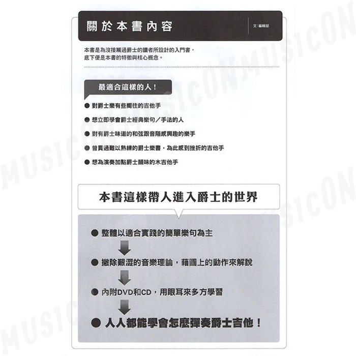 本書是為沒接觸過爵士吉他者所設計的入門書