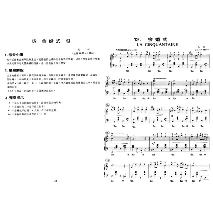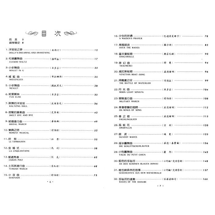 月光曲、郵遞馬車、藍色多瑙河……等,並附上鋼琴