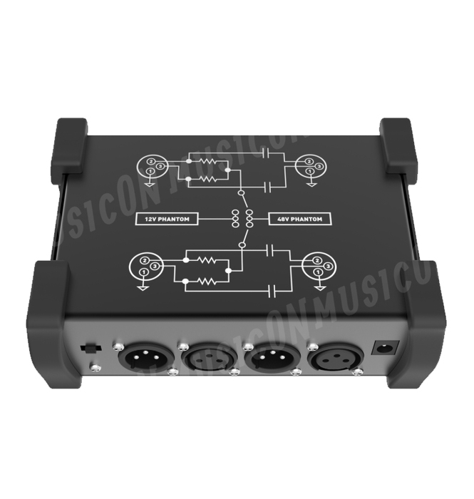 ◌ 使用2*DC9V電池供電并設計外置電源接頭(DC12V),可選擇12V或18V供電,最多供應兩支電容式麥克風使用,適合在外景工地工作